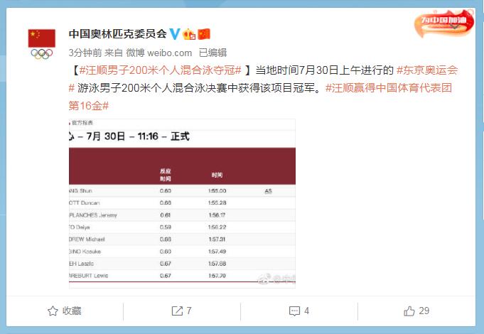 中工网讯 据中国奥林匹克委员会官微消息,当地时间7月30日上午进行的东京奥运会游泳男子200米个人混合泳决赛中获得该项目冠军。