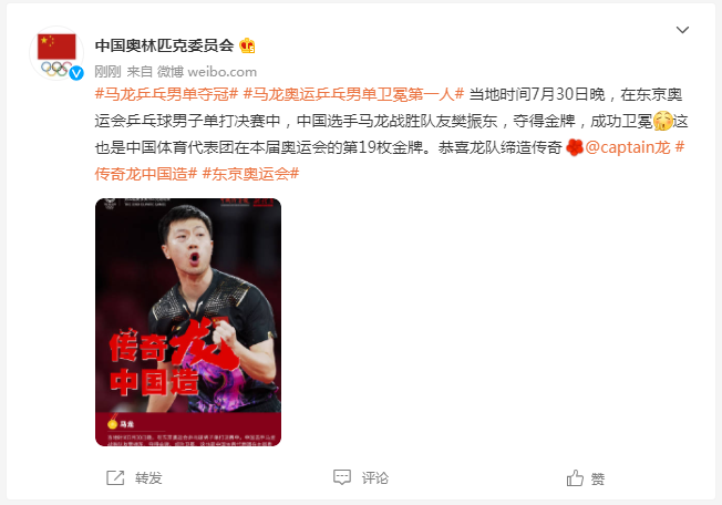 中国奥林匹克委员会官方微博截图