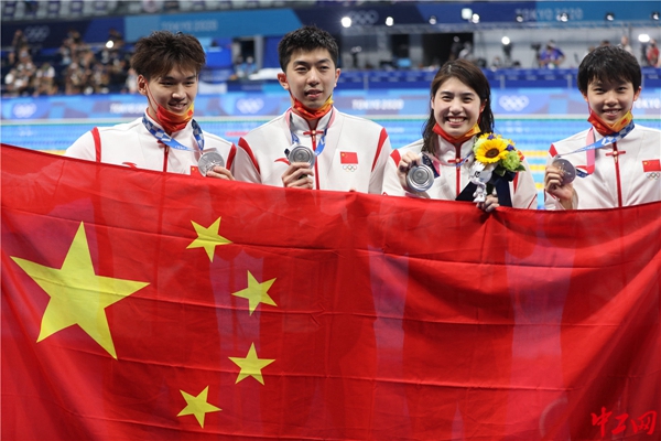 7月30日,在东京奥运会男女4×100米混合泳接力决赛中,中国组合徐嘉余(仰泳第一棒)、闫子贝(蛙泳第二棒)、张雨霏(蝶泳第三棒)和杨浚瑄(自由泳第四棒)以3分38秒86拿下银牌!英国组合获得本项目金牌,并以3分37秒58打破世界纪录,澳大利亚第三。