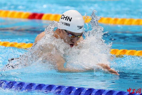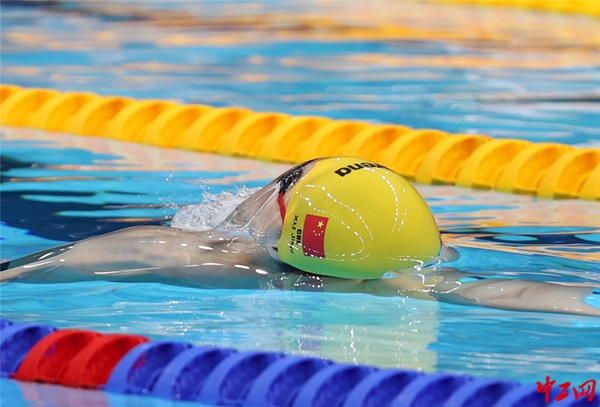 第一棒徐嘉余(仰泳)在比赛中。