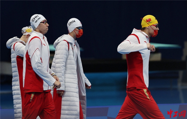 接力赛的四位中国选手准备登场。