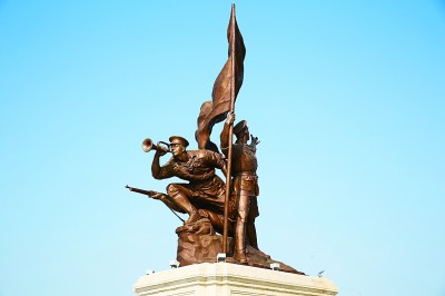 南昌建军雕塑广场上的“军旗升起”雕塑 光明日报通讯员 马悦摄