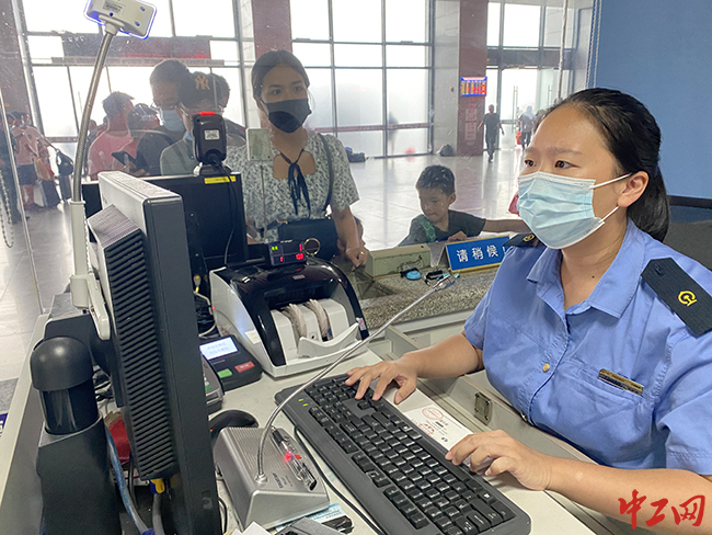 “美女,请把口罩戴好”,“您好,现在去贵州到南昌转车更快”,三明北站售票员矫梦缘一边说话一边手指不停地在键盘上敲打着,50秒钟时间8张到贵州的车票购买成功。