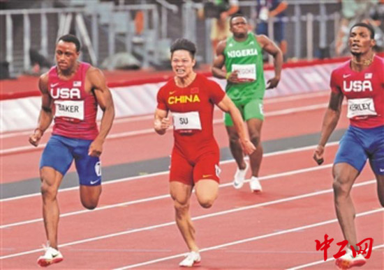 中国飞人苏炳添在男子百米飞人大战中夺得第六,半决赛9秒83刷新亚洲纪录,创造了中国人在奥运百米项目中的历史。