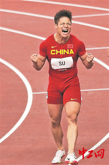 两个小时前进行的半决赛中,苏炳添发挥出色,以9秒83的成绩将自己保持的亚洲纪录提升了0.08秒,最高时速达42公里,以半决赛第一的成绩晋级决赛,创造了中国运动员站上奥运会百米决赛跑道的历史。