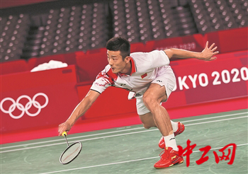 8月2日,谌龙在东京奥运会羽毛球男子单打决赛中。工人日报-中工网特派记者 杨登峰 摄