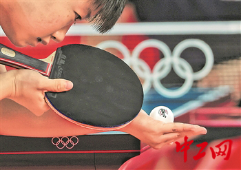 ① 8月1日下午,在乒乓球比赛中,中国选手孙颖莎使用国产品牌的乒乓球和球拍。