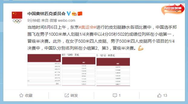 【激情聚会】综合消息:郑鹏飞晋级男子1000米单人划艇半决赛