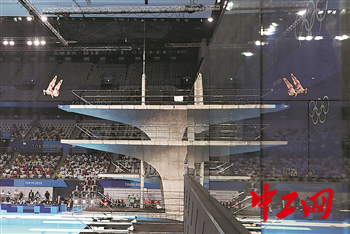 7月26日,在跳水男子双人10米台决赛中,中国组合曹缘/陈艾森在比赛中。
