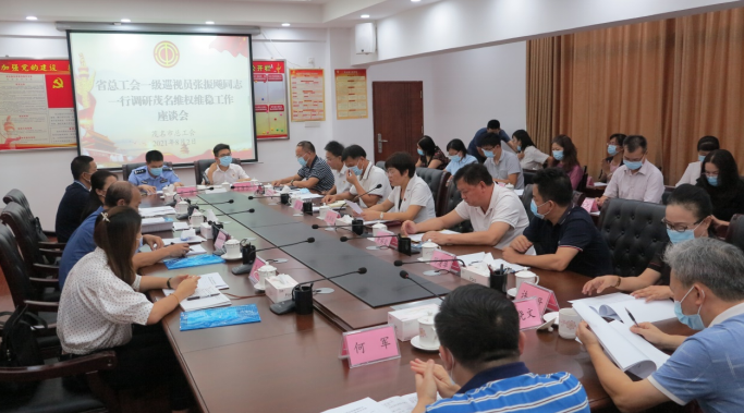 8月2日下午,省总工会在市总工会召开茂名维权维稳工作座谈会。市直有关单位的分管领导或业务科室负责人以及市总中层以上干部近30人参会。