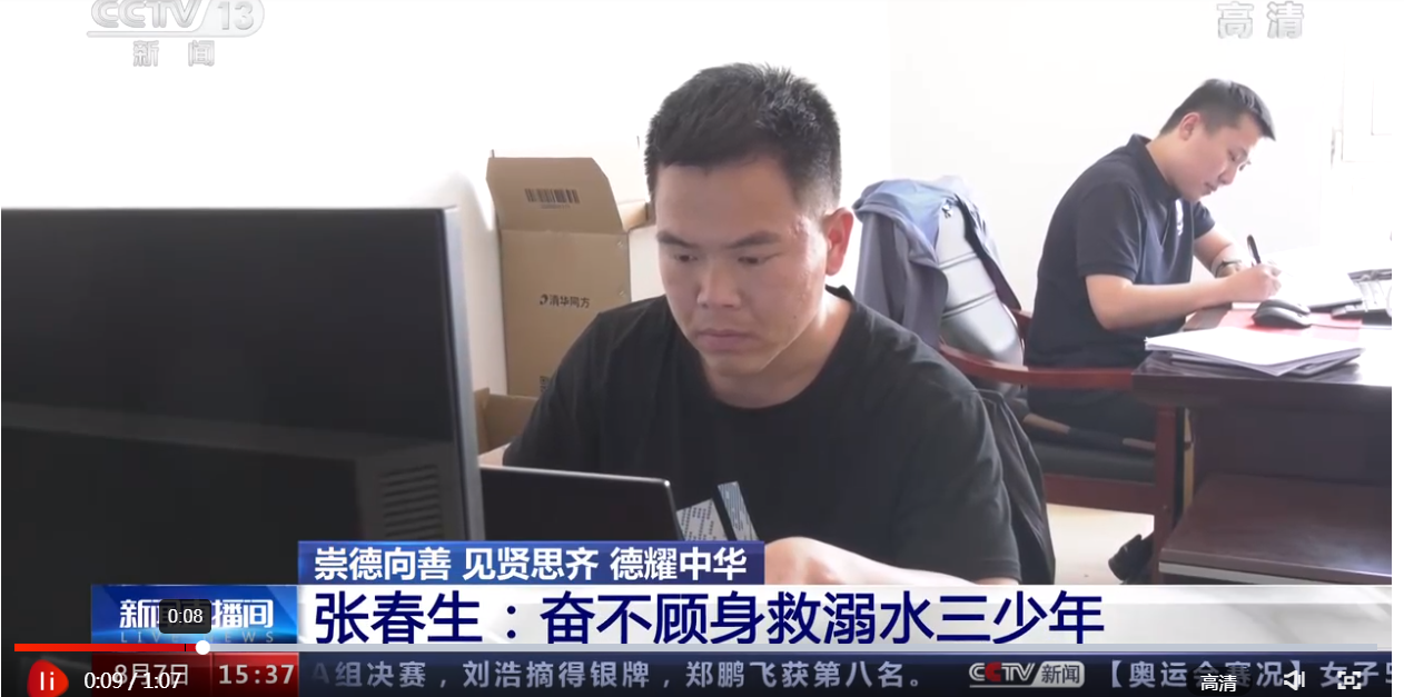 央视网消息:2015年夏天,19岁的张春生刚刚参加完高考。一天下午,三名中学生不慎落入水中,就在附近的张春生听到呼救声后立即跃入水中,拼尽全力将两位深陷漩涡的学生拖上岸边。就在众人长舒一口气时,更危急的情况出现了:第三名学生被水流冲至闸门口附近,在5米深的漩涡中慢慢下沉。张春生没有犹豫,拖着疲惫的身子再一次跳进水中。