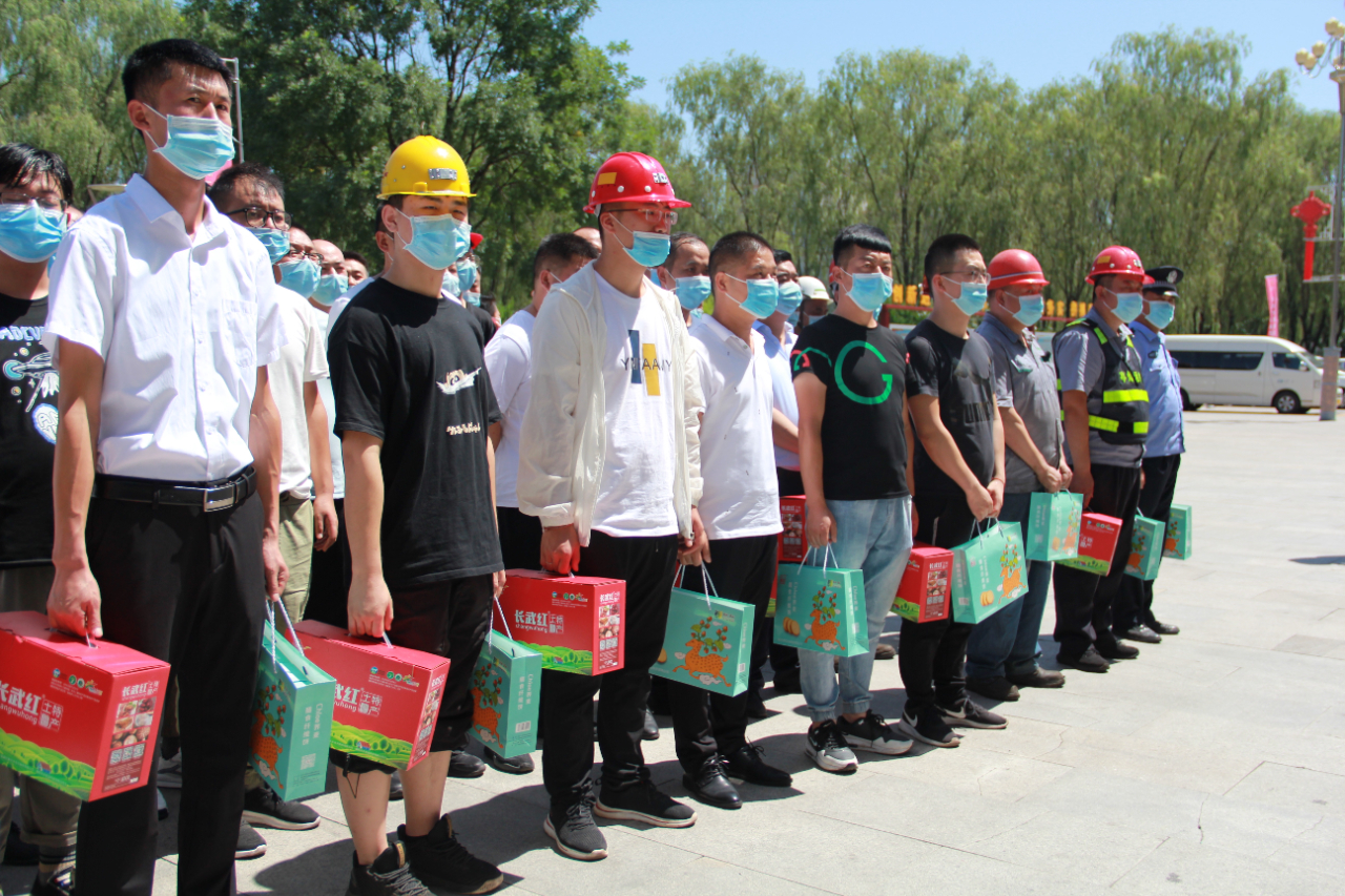 8月6日,陕西省咸阳市总工会常务副主席张静一行,来到长武县亭南煤业公司和地处乾县的咸阳市2021年普通干线公路养护大中修工程工地,开展“送安康、送知识、送清凉”行动,向奋战在高温下的煤矿、筑路工人,分别送去消夏“大礼包”和防暑降温劳保用品。