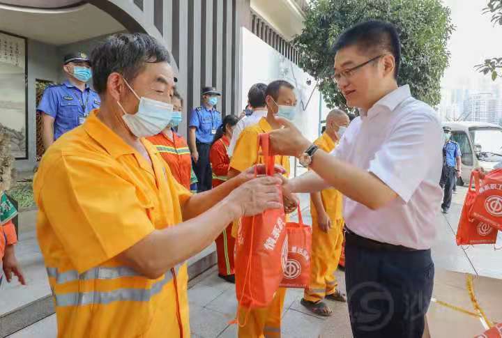 为切实做好夏季防暑降温工作,充分体现对一线职工的关爱,8月上旬,重庆市沙坪坝区总工会组织慰问组,开展“关爱职工送清凉”活动,看望慰问坚守一线的区疾控中心防疫人员、青年志愿者社区工作人员,以及建筑工人、环卫工人、城管执法队员、市政维护工人和“饿了么”外卖骑手等户外劳动者,向奋战在高温一线的广大职工表示慰问和感谢。