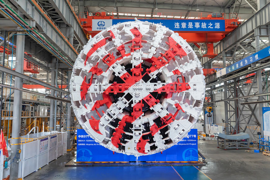 中铁977号大直径土压平衡盾构机下线。天津东疆保税港区供图