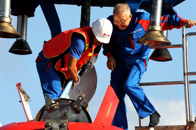 2018年5月21日,汪品先院士走进“深海勇士”号载人深潜器。新华每日电讯记者张建松摄
