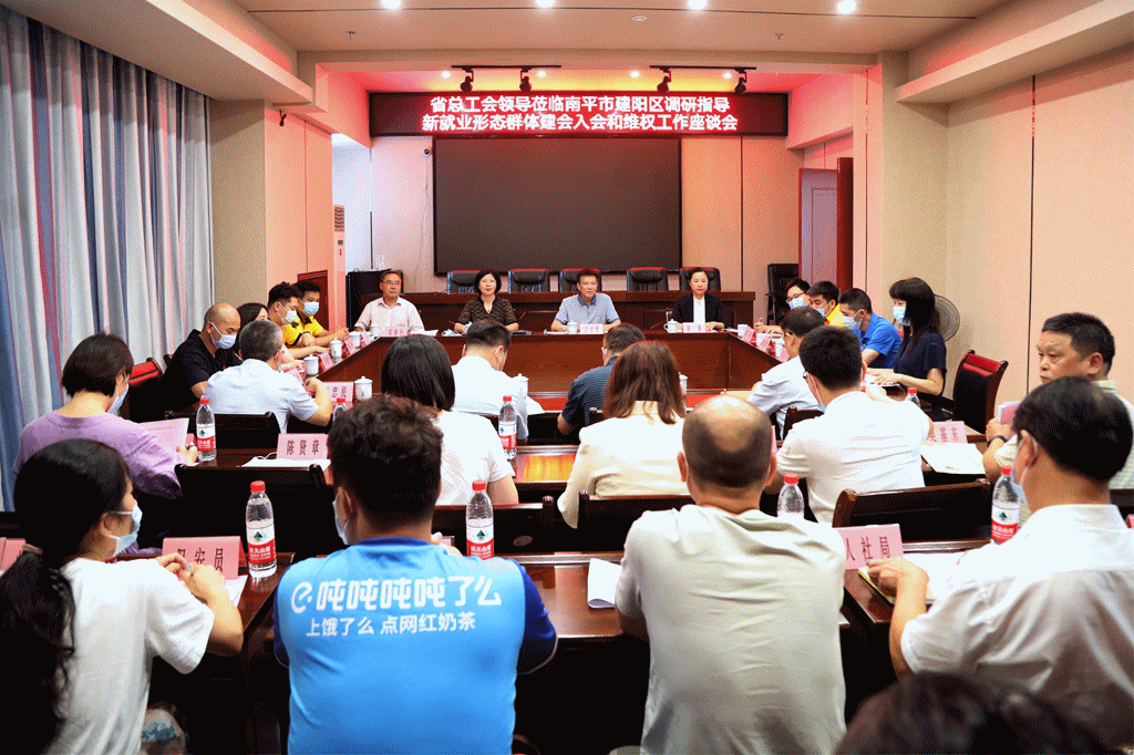 在建阳区总工会座谈建阳区共建成新就业形态群体行业企业工会15家、吸收新就业形态劳动者1452人入会,建会率和入会率分别达到95.5%和97.6%。