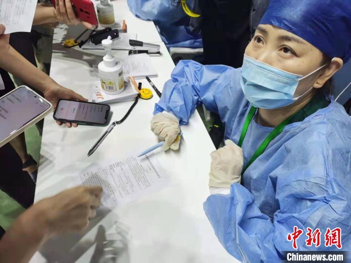 进入静安体育中心西二区,记者看到,接种大厅里,工作人员开辟了专门通道为预约的孩子登记相关信息。除了查看接种孩子的行程码和随申码,医护人员细致询问着各种信息:吃早餐了吗?有没有禁忌症?三天内是否用过抗生素?是否罹患神经系统疾病?是否有遗传病等。一切信息核对完,学生和家长在知情同意书上签字。工作人员告诉记者,接种区专门设立的血糖血压检测区,为有需要的青少年测量血压、血糖。