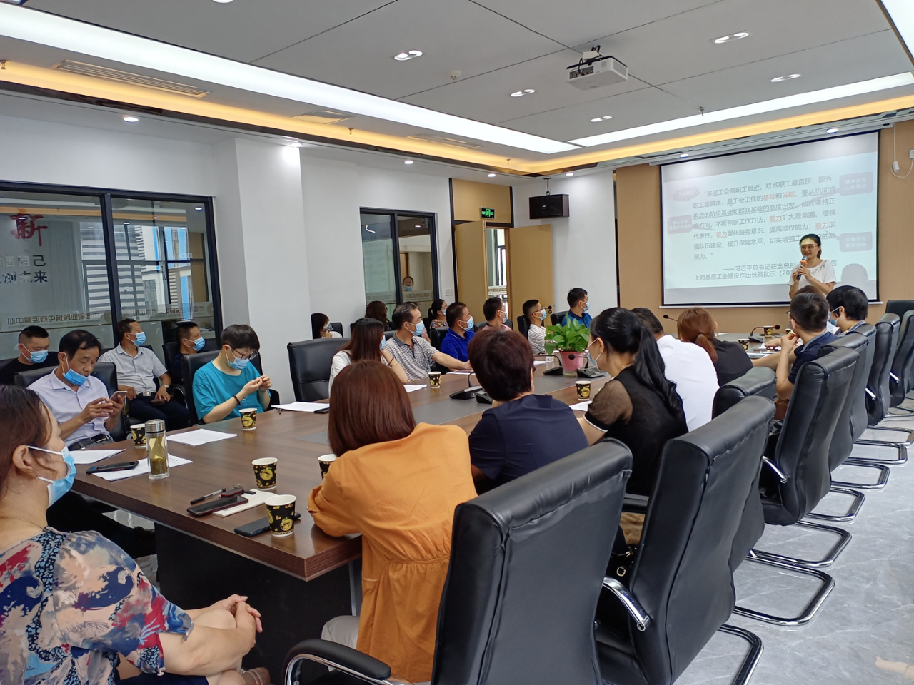 针对今天到场的大部分学员都是规上企业的建会专员,我围绕“基层工会组建”这个主题,从企业建会的十大好处、基层工会的组织形式、建会的一般程序三个方面详细介绍了建会的实操步骤。考虑到非公企业工学矛盾相对突出,我把讲课时间控制在一个小时以内,结合源潭刷业企业的工作实际,精简内容,提炼精华,赢得了学员的好评。