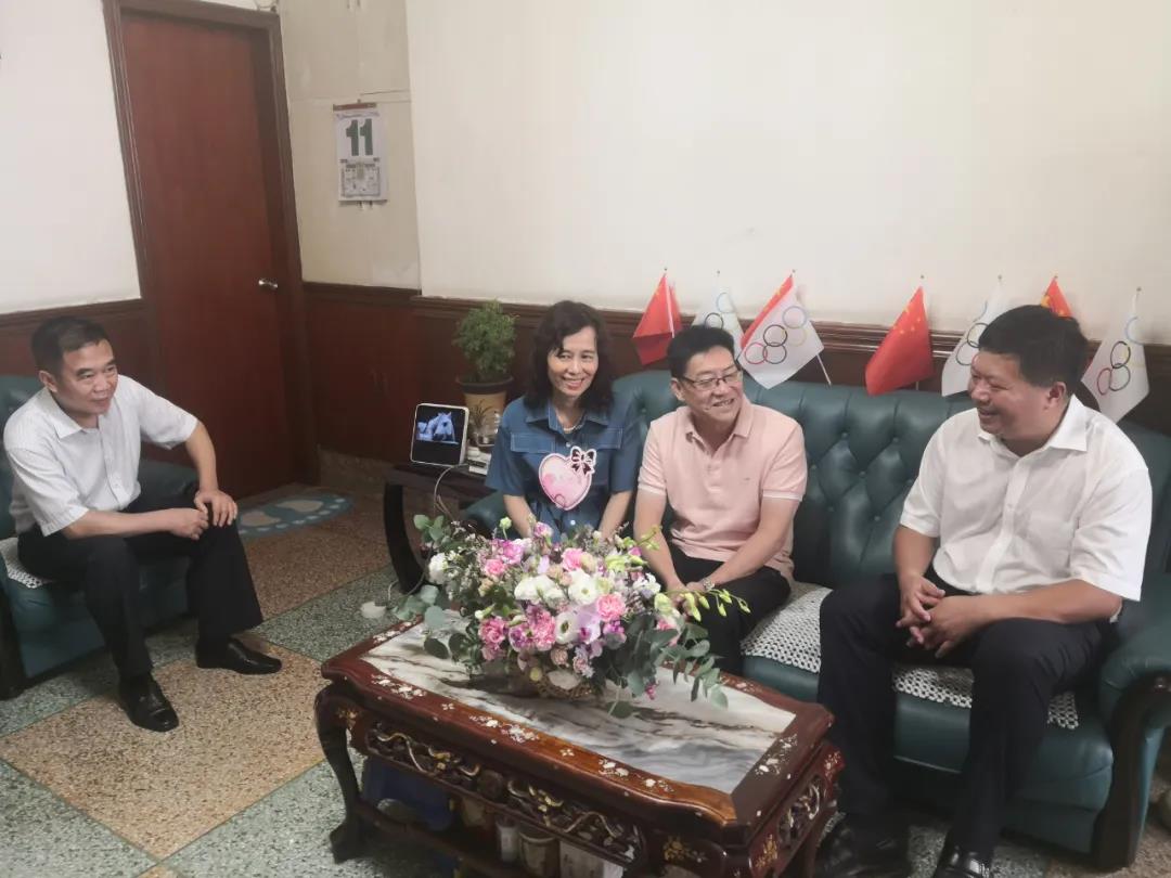 黄常新与谢思埸父亲谢平忠和母亲蔡宝儿亲切交谈,了解谢思埸的成长历程和运动生涯,感谢他们培养出如此优秀的运动员,为祖国、为家乡赢得荣誉。