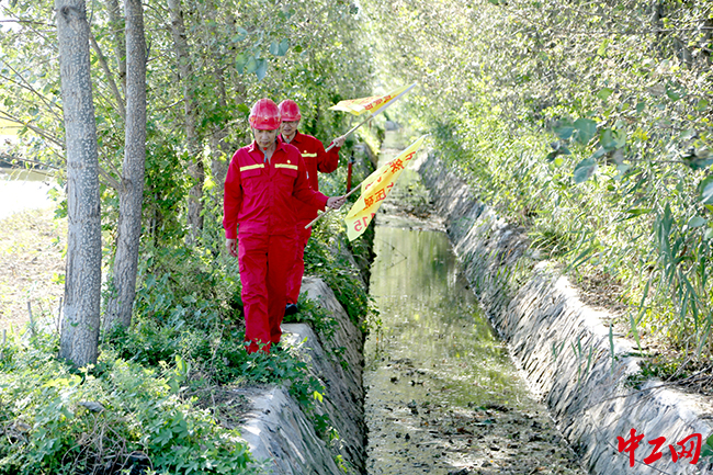 徒步检测踏线是日常,就在前一天,单位的生产调度刚刚发布了新一轮的暴雨天气预警,和张培新一起去巡线的还有同事王成全,他们在班前会后迅速换好工作服,又往工具包里装了雨衣、纯净水和几个苹果,钻进了等待在队部门口的皮卡车里。他们要去嘉唐管线与迁曹铁路交叉段巡视管线情况的,两人当天要完成21公里的管道徒步检测巡线工作,以确保嘉唐管线下游用户能正常用气。