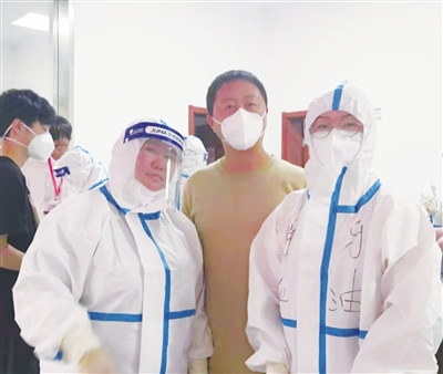 对居家隔离家庭、重点人群的核酸检测工作最忙最累,需要8名医护工作者配备12名社区志愿者。宋臻叫上丈夫、女儿,穿上防护服和医护人员一起战斗。她和女儿一个负责采集信息,一个配合医护人员传递检测物资,协助手部细菌消杀,何锋则紧随其后负责现场消杀、收集医疗废弃物。等到所有工作忙完,他们的衣服早已湿透了。