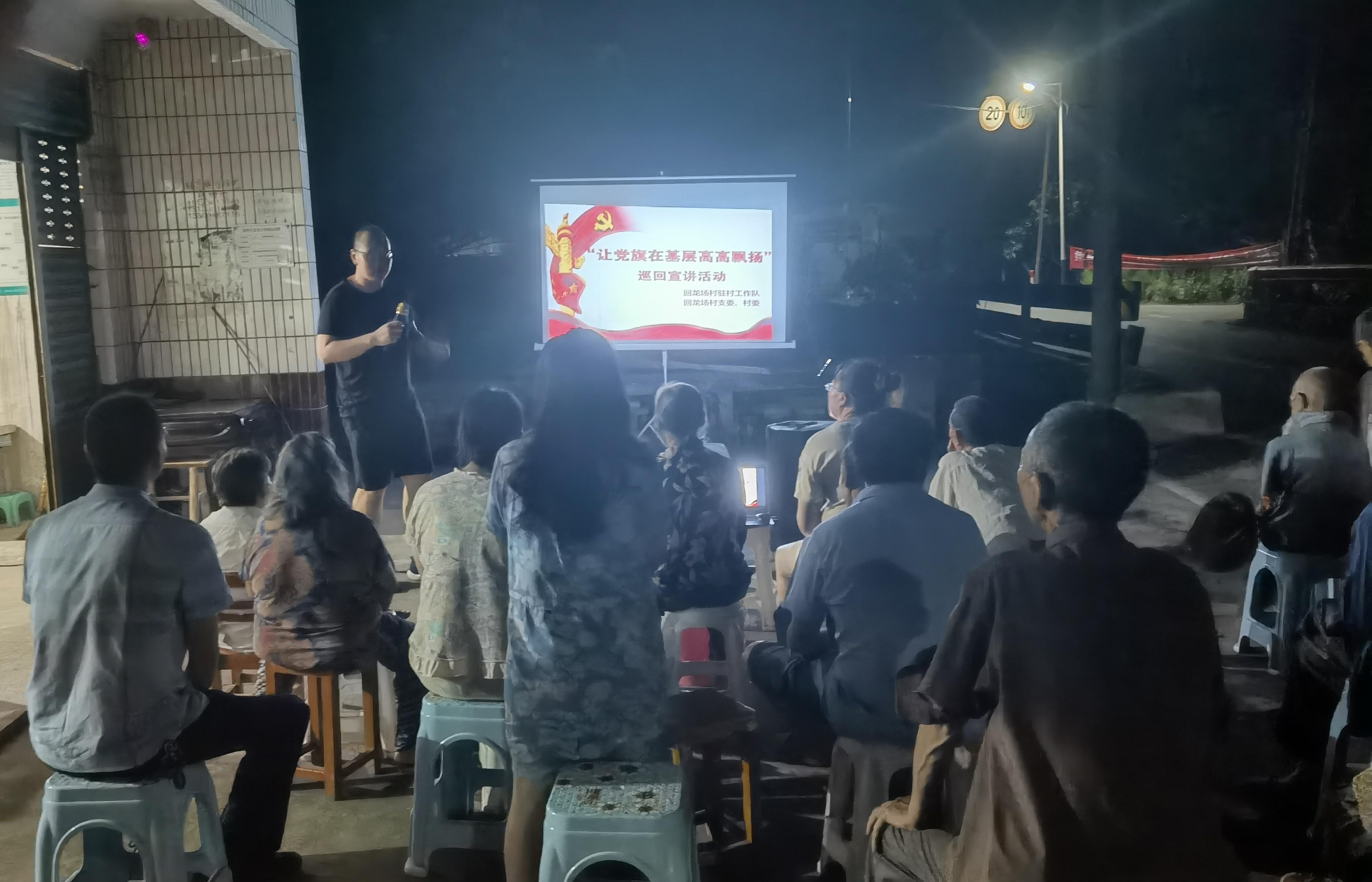 考虑到回龙场村群体以留守老人为主的实际,重庆市总工会驻村工作队以党史学习教育为契机,利用晚上农闲时间,通过爱国主义电影放映等老百姓喜闻乐见的方式,组织学习党史、改革开放史、社会主义发展史,大力宣传党和政府关爱农民工的政策措施和《乡村振兴促进法》等内容,让村民在家门口就能享受到党史教育的“大餐”,学习到乡村振兴和工会组织相关知识,做到劳作、学习两不误。