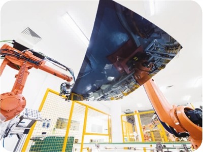 福耀打造自动化、柔性化智能工厂,生产大尺寸全景天幕玻璃。