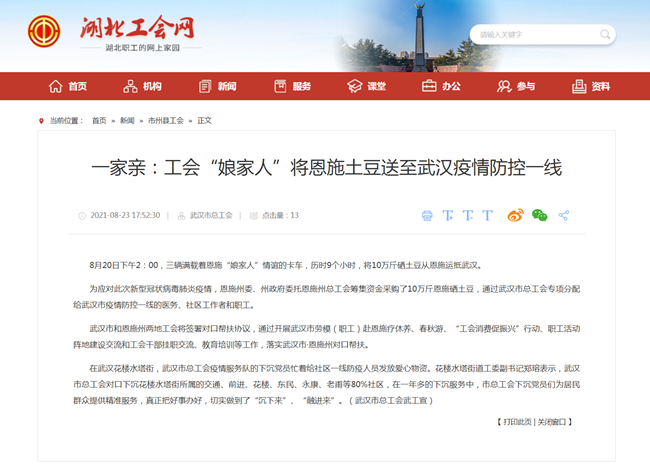 湖北省总工会官网截图