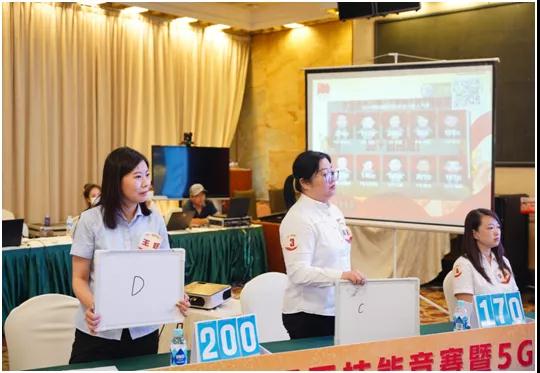 “5G+应用推广”现场竞技环节,通过必答、抢答、风险题及团队情景模拟,充分展示了选手们对于5G应用知识的了解、对于5G在工业制造、智慧教育、智慧文旅等多行业的综合应用和推广能力,同时比赛通过中国移动和商务平台向广大网友进行现场直播,并通过小程序与场外观众进行互动,关注度超过5000人。
