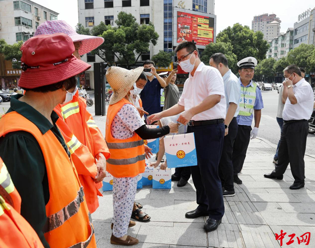 彭敏群前往街心花园、城南学校、东糖佳苑施工现场慰问执勤交警、环卫工人和施工工人,详细了解一线职工工作和待遇情况,并给奋战在高温一线的职工送上凉茶、毛巾等防暑降温物品,嘱咐大家在高温作业时要注意安全,做好防暑降温,保障身体健康安全。
