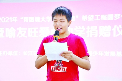 他为2021“帮困境大学生交学费”希望工程圆梦行动暨喻友旺爱心助学捐赠仪式而来。经过长江日报长江公益、武汉市青少年发展基金会前期征选,100名今年考上大学的学子每人即将领到5000元助学金。