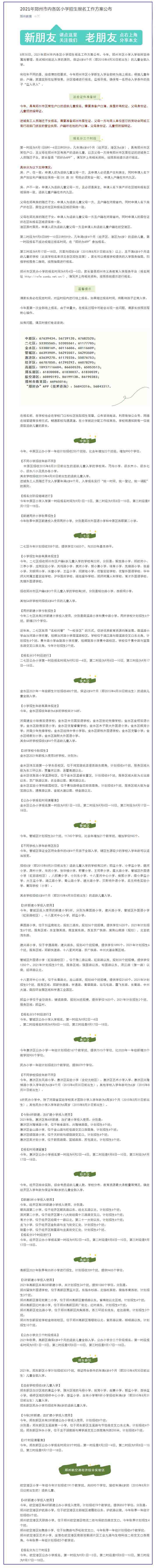 中工网讯 据郑州教育微信公众号消息,8月30日,2021年郑州市内各区小学招生报名工作方案公布。今年,郑州市区小学入学依然坚持属地管理、免试相对就近入学的原则,保证6岁4个月(即2015年4月30日前出生)的儿童全部入学。