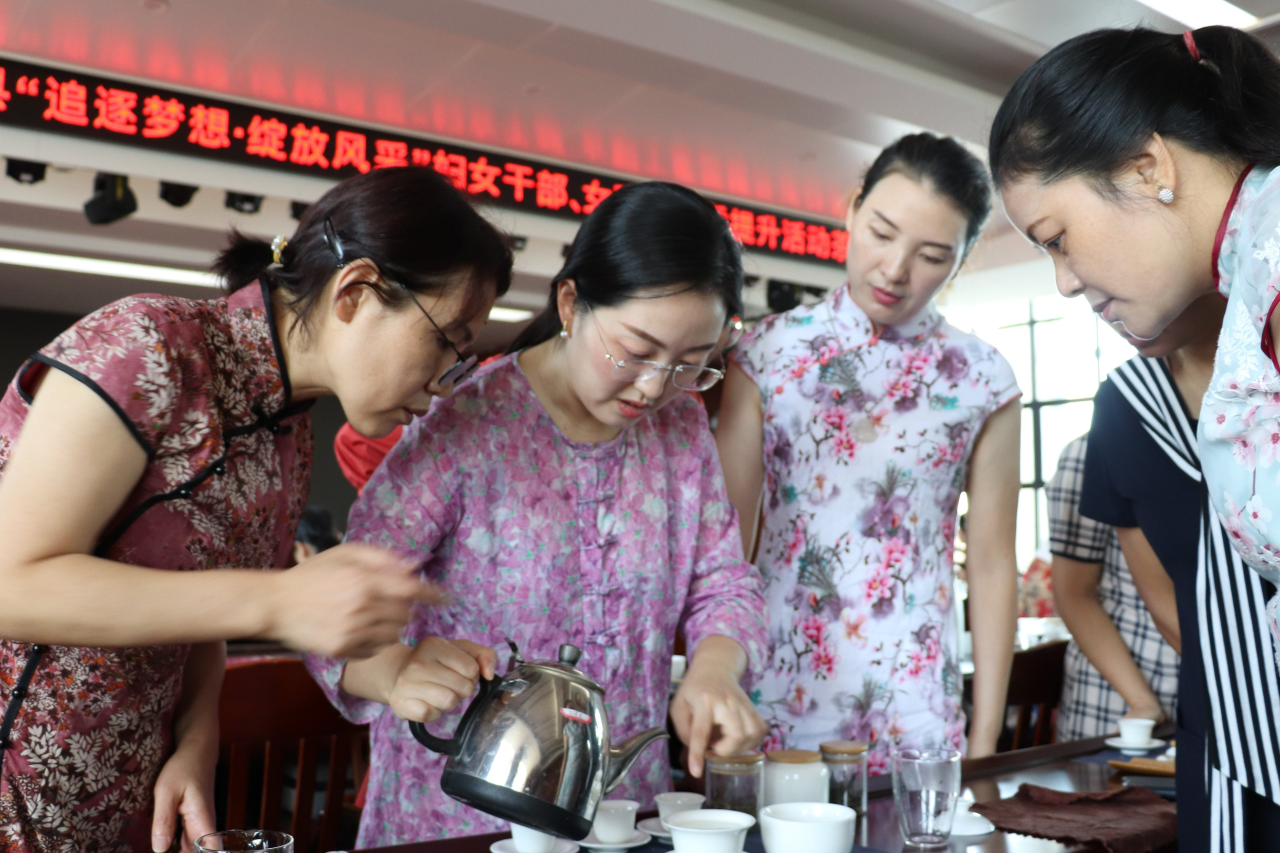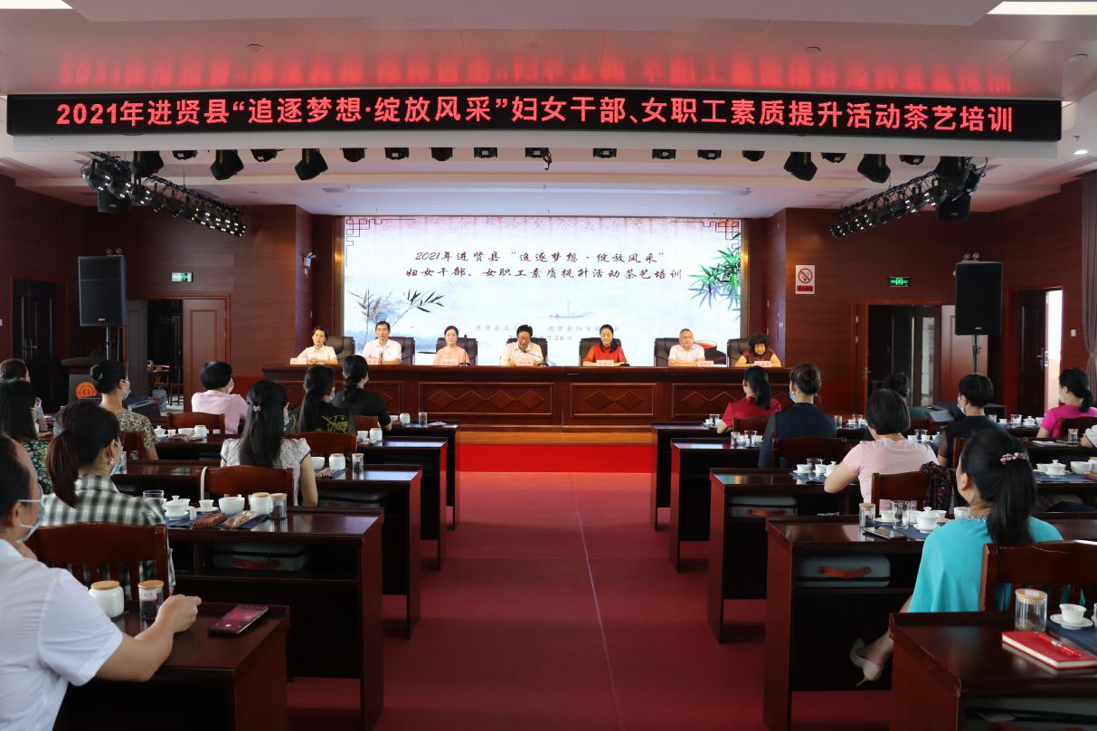 8月28日上午,江西省南昌市进贤县总工会联合县妇联在工人文化宫开展2021年进贤县“追逐梦想·绽放风采”妇女干部、女职工素质提升活动茶艺培训。县人大常委会副主任、县总工会主席焦官印出席开班仪式并讲话,县妇联负责人李杨珍主持开班仪式。