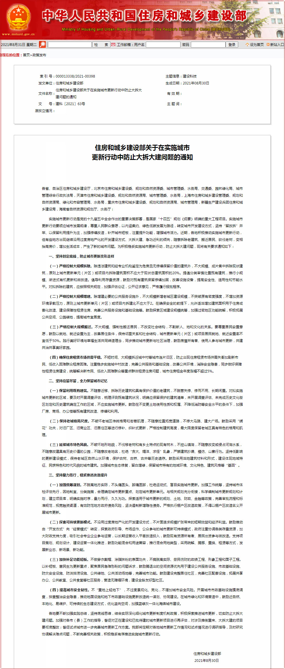 中工网讯 据中华人民共和国住房和城乡建设部网站消息,近日,住房和城乡建设部发布《关于在实施城市更新行动中防止大拆大建问题的通知》。