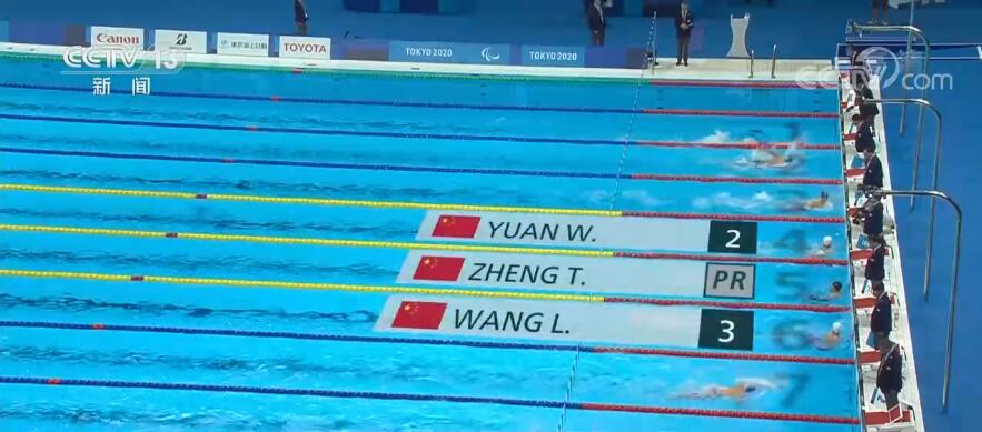 在男子50米自由泳S5级决赛中,中国选手郑涛、袁伟译和王李超全程领先,最终包揽金银铜牌,郑涛以30秒31的成绩打破残奥会纪录夺冠,这是中国残奥代表团在本届赛事上收获的第66枚金牌,也标志着自1984年残奥会以来中国残奥代表团在夏季残奥会上第500枚金牌的诞生。