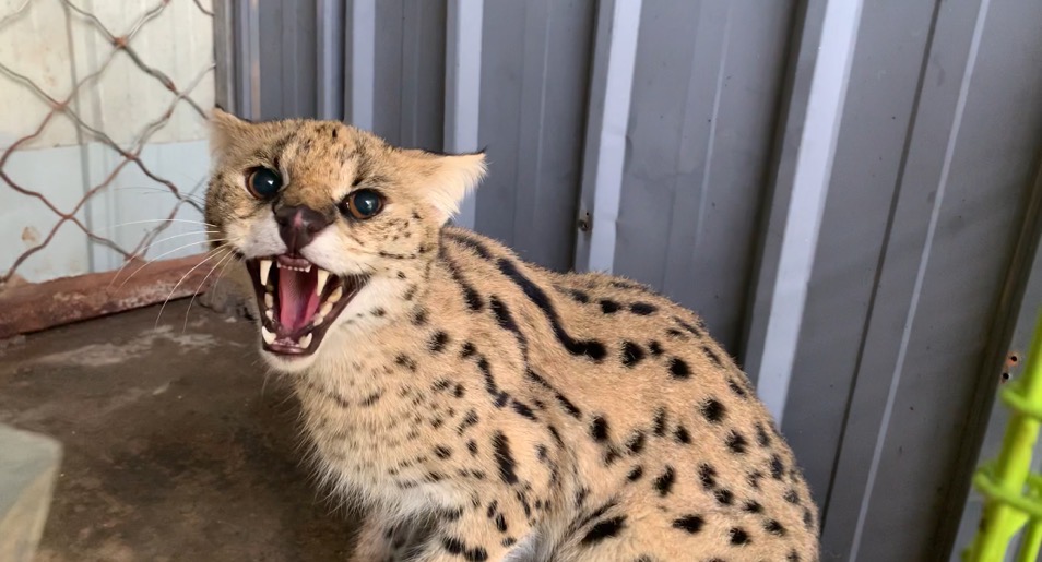 经过粗略的检查,队员们发现,这只薮猫有半米高,近一米长,身上没有外伤,但是疑似患有皮肤病 ,身上不时地散发出异味。队员们希望找到一家合适的机构,以便可以将这只薮猫移交。