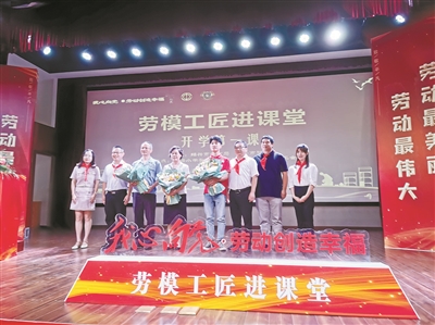 中工网讯 “向劳模工匠学习,学习他们甘于奉献的精神,与楷模同行、与能人同行,做新时代的答卷人。”开学第一天,浙江省绍兴市北海小学教育集团镜湖校区的同学们向全市小学生发出了学习劳模工匠的倡议。在这个特殊的日子里,三位劳模工匠来到学校,分享了他们用劳动创造美好生活,推动社会进步、激励后浪前行的人生历程,7000余名师生通过收看直播,上了开学第一堂思政、德育课。