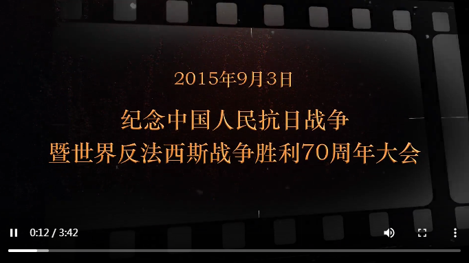 2015年9月3日,纪念中国人民抗日战争暨世界反法西斯战争胜利70周年大会在北京举行。中共中央总书记、国家主席、中央军委主席习近平发表重要讲话。