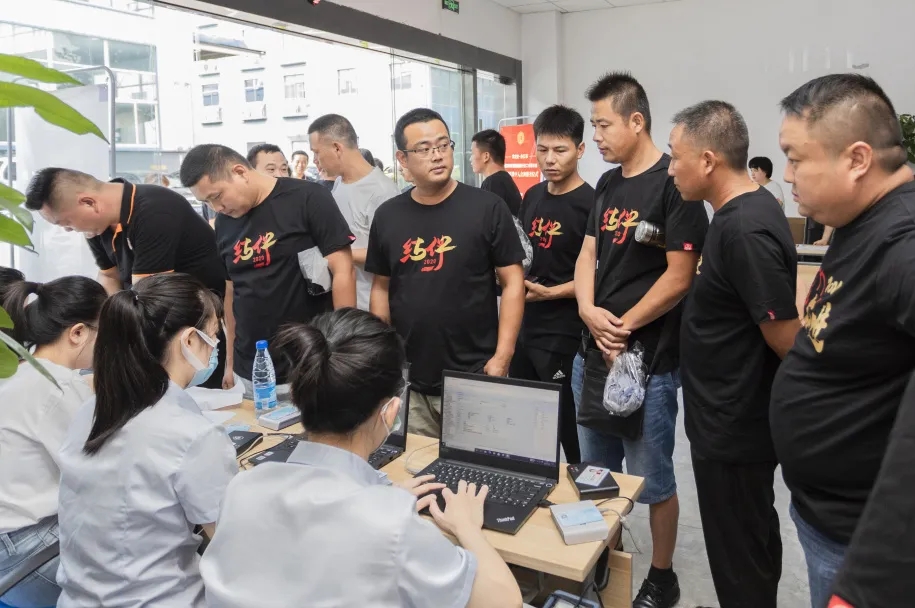 6月29日,为了让合肥地区的货车司机真切享受到工会提供的服务,推动入会工作,工作组与安徽省总工会、合肥市总工会、高新区总工会联合开展了“卡友心向党 奋进新征程”活动,其中有100名司机来到现场。