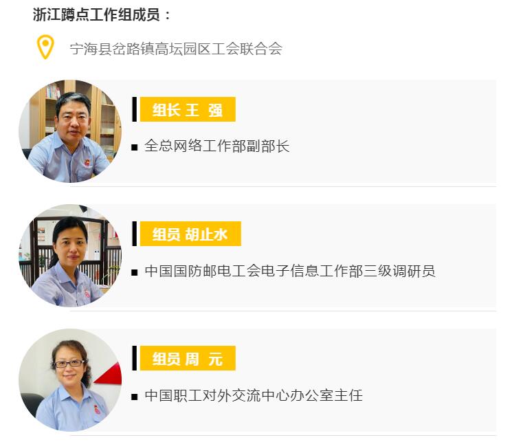 5月17日,全国总工会的3位工会干部——全总网络工作部副部长王强、中国国防邮电工会电子信息工作部三级调研员胡止水、中国职工对外交流中心办公室主任周元,一同从北京出发,乘坐7个多小时的高铁,抵达浙江宁波市宁海县。