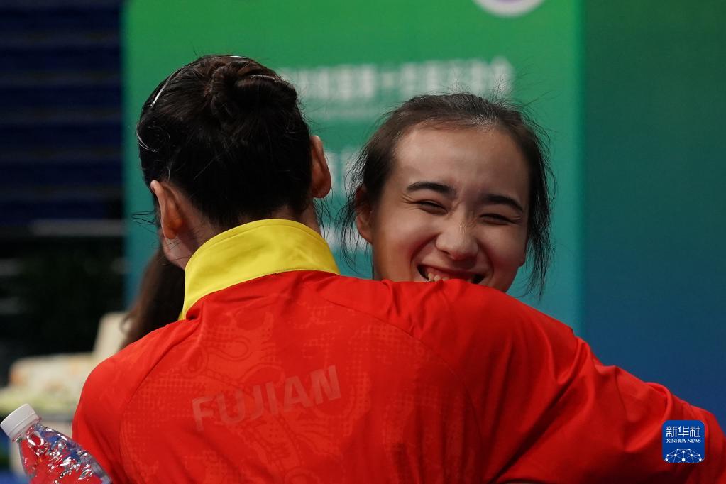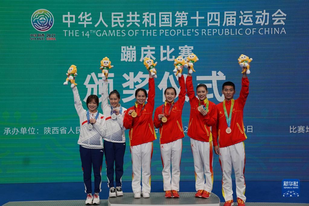当日,在西安举行的第十四届全运会蹦床女子个人决赛中,福建队选手林倩麒以56.125分的成绩获得冠军。
