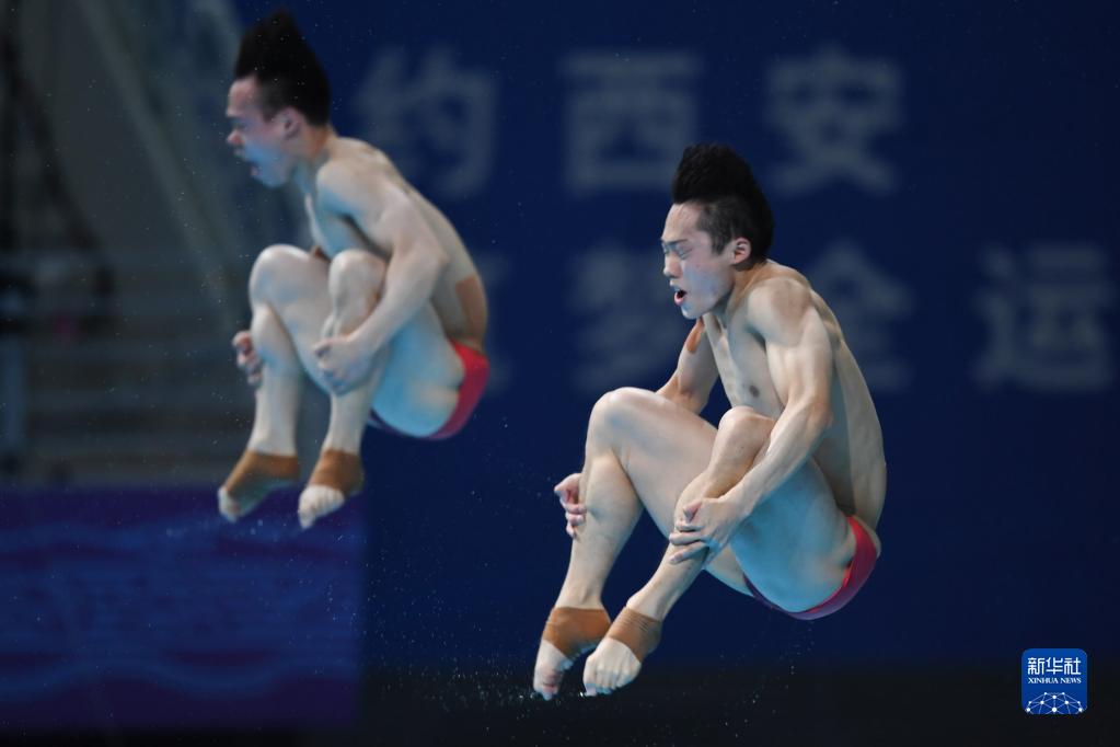 当日,第十四届全运会跳水男子双人3米跳板决赛在西安举行。