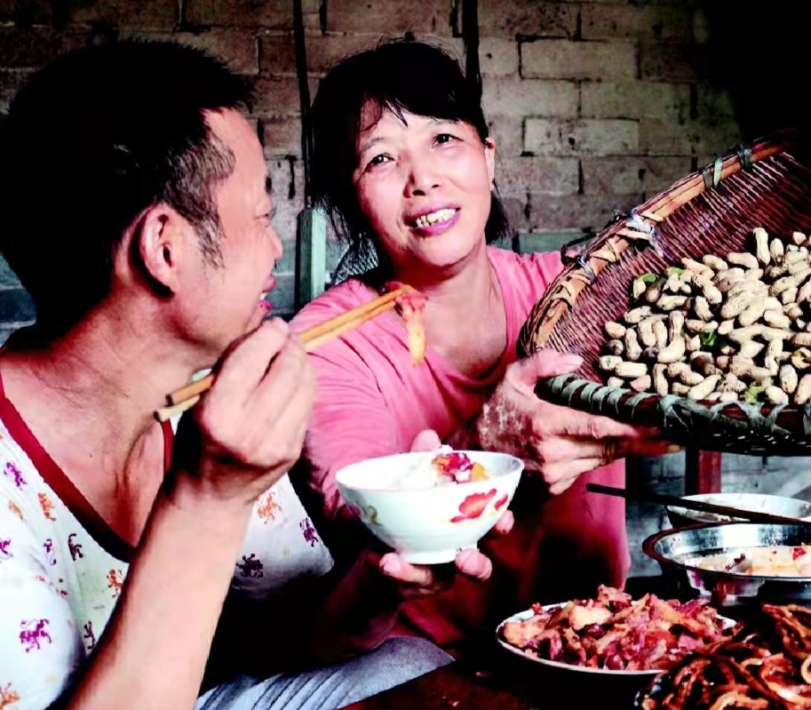 在何川眼中,妻子汤文淑平时话不多,是个比较内向害羞的人。“刚开始她不喜欢出镜,后来看见我坚持拍短视频,也慢慢愿意在一旁配合我,直到现在她本人也能大胆出现在镜头里了。”