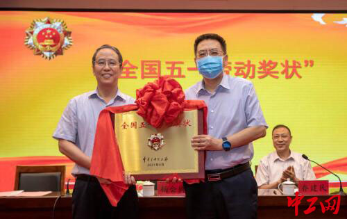 河南省总工会、省教科文卫体工会领导向河南中医药大学颁发了奖状。(文/赵会杰 吴晋一 图/秦东仁)