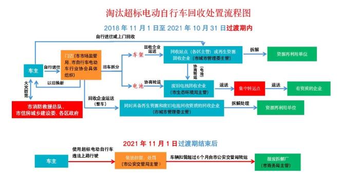 市交通综合治理领导小组办公室组织市公安局公安交通管理局、市生态环境局、市城市管理委、市市场监督管理局、市商务局、市住房城乡建设委、市自行车电动车行业协会等单位共同研究制定了《淘汰超标电动自行车回收处置工作方案》,规范了车辆处置渠道和配套的服务、管理措施。