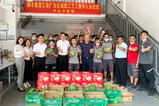 中工网讯 据广东省总工会客户端消息,9月8日,广东省中山市总工会与中山顺丰速运有限公司工会联合举办顺丰集团工会广东区域职工万人集中入会仪式,30多名快递小哥现场入会。