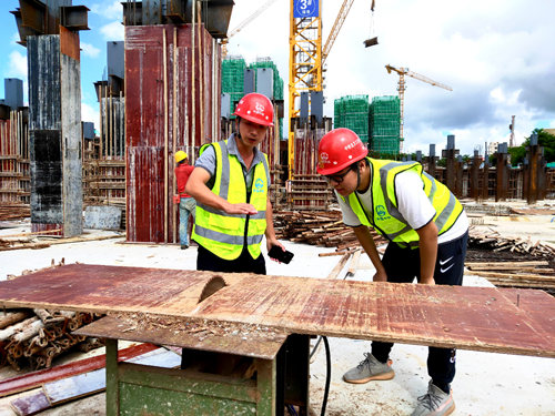 我是尹航,是中铁北京局天丰公司2021级的毕业见习生。两个月前,我告别学校与家人,来到了三亚海鲜广场项目。初到工地那天,我面色局促,站在角落无所适从。“工期紧,任务重,现在是工地最忙的时候,你别光站着,不会就过来看看?”一位皮肤黝黑、神情严肃的中年男子在检查钢筋,回头看了我一眼说。后来我才知道,他就是我的师父——项目经理石永昌。