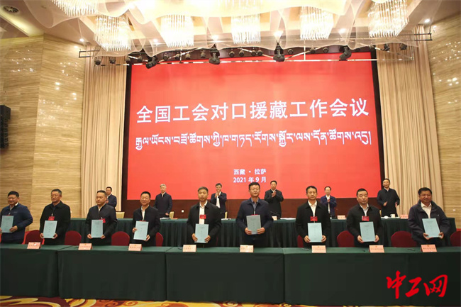 中工网拉萨9月14日电(记者 王鑫)9月14日,全国工会对口援藏工作会议在西藏自治区拉萨市召开。会议回顾了2014年以来工会援藏工作取得的成绩,就开展好工会系统今后五年(2021-2025年)援藏工作做出部署。承担援藏任务的各省市总工会、央企工会和西藏地市工会当天签订约3.5亿援助协议,涉及628个援助项目。