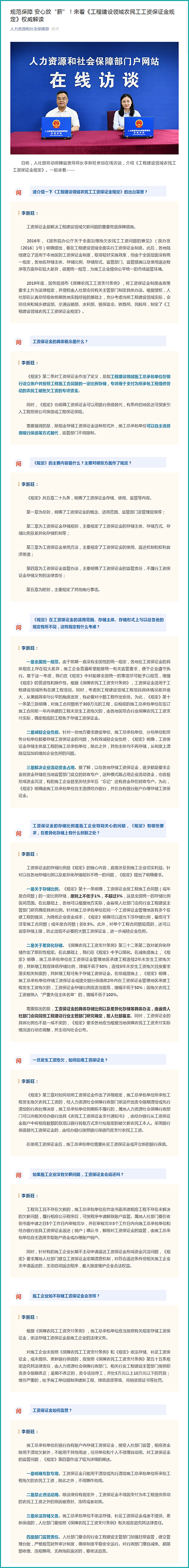 据人力资源社会保障部政务微信公众号消息,日前,人社部劳动保障监察局局长李新旺参加在线访谈,介绍《工程建设领域农民工工资保证金规定》。一起来看→