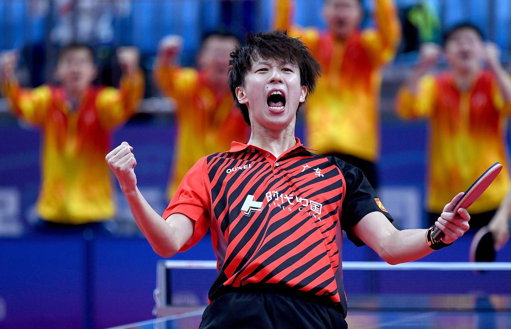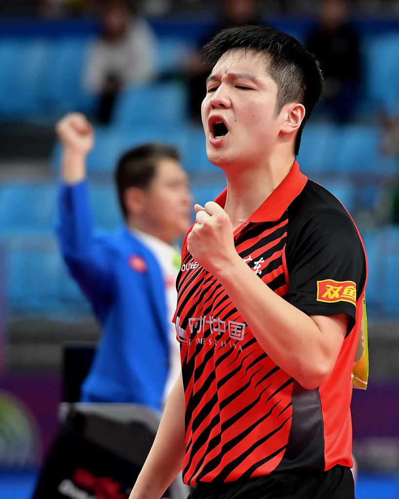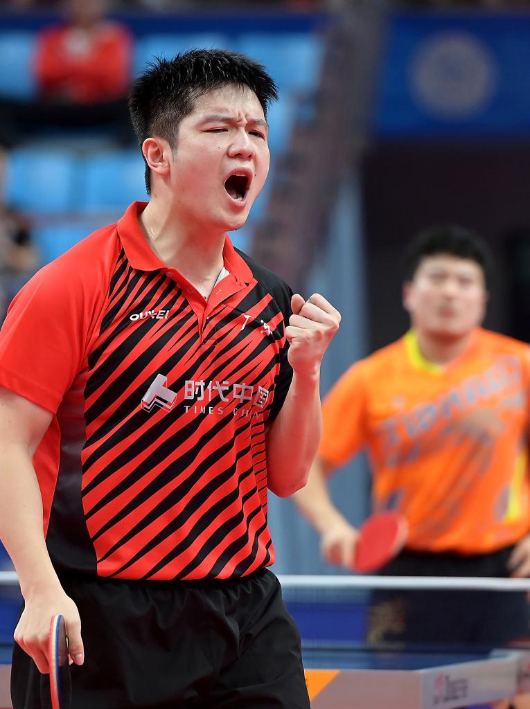 9月20日,广东队选手樊振东在比赛中庆祝。